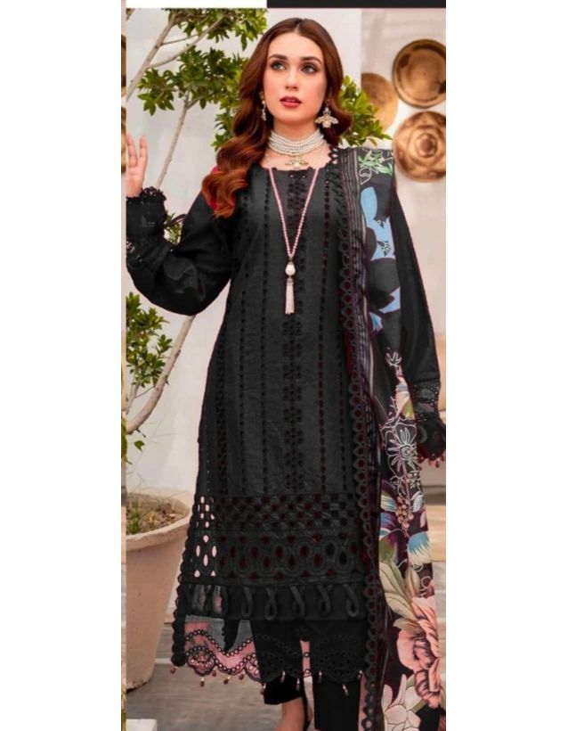 This lawn set, code 5040-/AZ, boasts the best air jet quality for maximum comfort. With a front boring full embroidery and sleeves chicken embroidery, along with an embroidered back, it exudes elegance. The zari dupata adds a touch of luxury, while the dyed trouser and damn chicken patch complete the look. 100% guaranteed to be the same as the original.